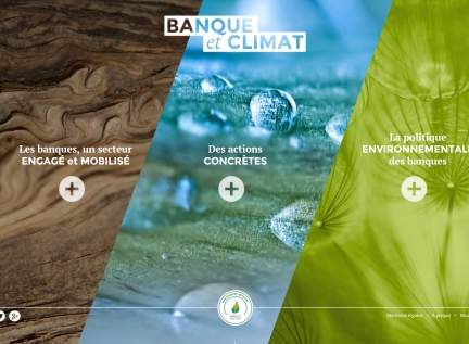 Nous réalisons pour la Fédération bancaire française en collaboration avec les plus grandes banques françaises, le site internet « Banque & Climat ». Il vise à permettre de suivre l'événement de la COP 21 et de présenter toutes les actions des banques mettant en valeur les actions de la profession au service du climat et de la transition énergétique.