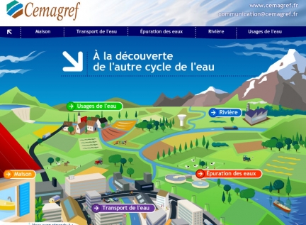 Pour le compte de l'Institut national de recherche en sciences et technologies pour l'environnement et l'agriculture, réalisation d'un module ludo-pédagogique réunissant des scènes animées interactives et un jeu questions-réponses sur les enjeux majeurs liés à l'eau sur terre, une richesse naturelle à préserver.