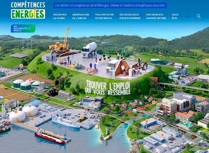 Conception, réalisation en 3D et développement du portail des métiers et compétences de la filière gaz, chaleur et solutions énergétiques associées.