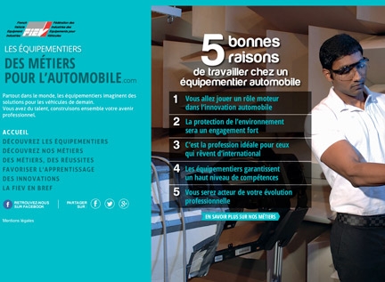 Ce site est développé pour le compte de la Fédération des Industries des Equipements pour Véhicules (la FIEV), à destination des jeunes. Le site est riche en informations notamment sur :