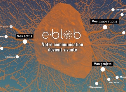 Voici e-blob, le nouveau format de communication innovante de notre agence. Il se présente comme un espace vivant, interactif qui grandit au scroll et qui présente au bout de ses ramifications des popins de contenus.