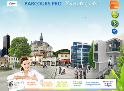 Pour le compte de la Direction Commerciale d'EDF et pour un usage interne, conception et réalisation d'un guide interactif du parcours professionnel au sein de la DCO.