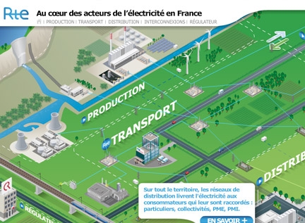 Pour le compte de RTE (Réseau de Transport de l'Electricité), conception et réalisation d'une animation pédagogique sur les chemins de l'électricité.