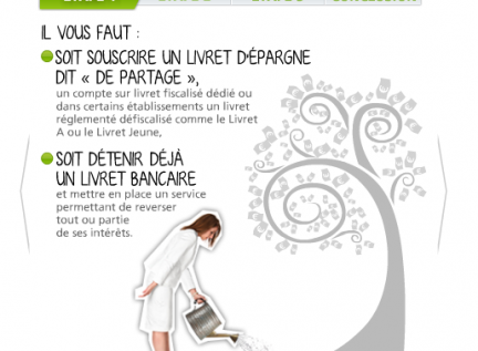 Grâce à l’investissement socialement responsable et l’épargne solidaire, vous mobilisez votre épargne au bénéfice d’activités ayant une utilité sociale : insertion par l’emploi ou le logement, aide internationale, développement des énergies non polluantes... Dans un module didactique, COM CI COM CA réalise une interface simple et conviviale permettant d'expliquer le fonctionnement de ce service.