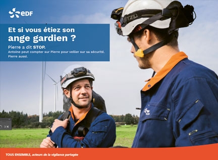 Conception et réalisation d’une campagne d’affichage sur l’importance de la vigilance partagée sur les site de travail du Groupe EDF.