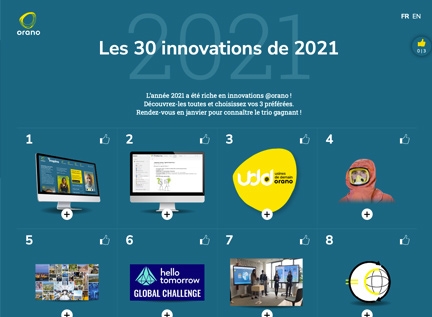 Création et développement d'un module interactif interne de présentation des 30 innovations d'Orano en 2021.